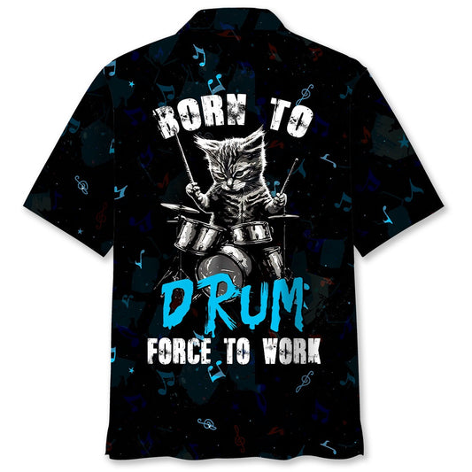 Punk Rockstar Kitty Cat Drummer Playing Drums Hawaiian Shirt, Cat Hawaiian Shirt, Funny Hawaiian Shirts