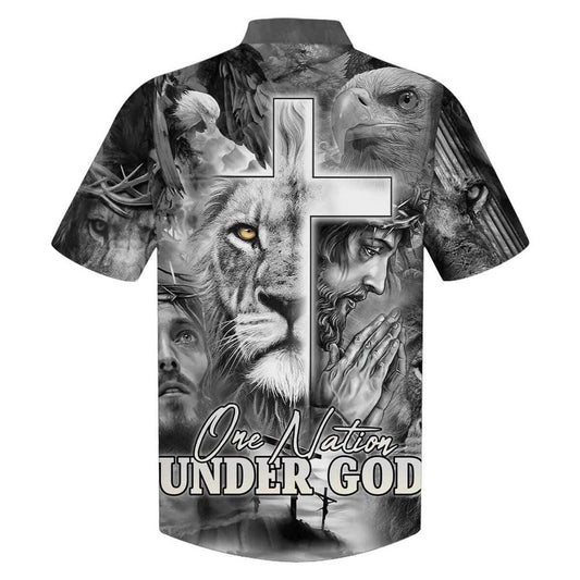 Jesus And The Lion Of Judah One Nation Under God Hawaiian Shirt For Men, Christian Hawaiian Shirt, Gift For Christian