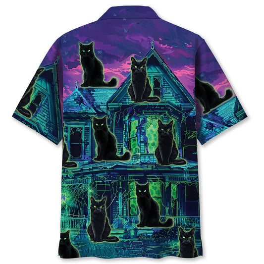 Black Cat Haunted House Hawaiian Shirt, Cat Hawaiian Shirt, Funny Hawaiian Shirts