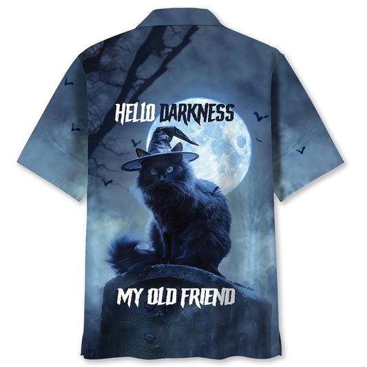 Black Cat Hello Darkness My Old Friend Hawaiian Shirt, Cat Hawaiian Shirt, Funny Hawaiian Shirts