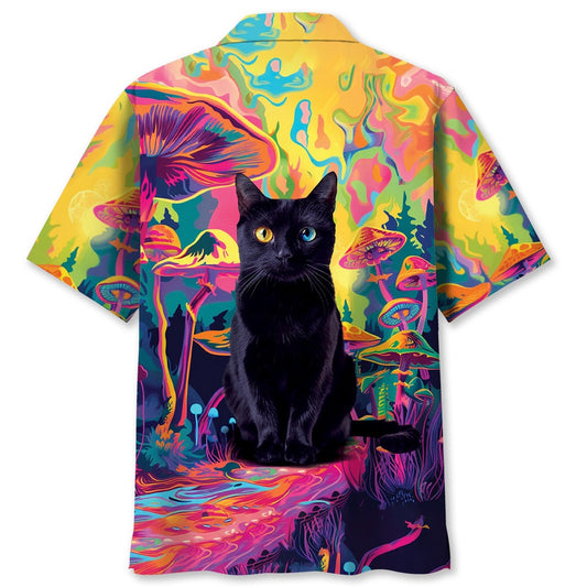 Black Cat Hippie Mushroom Hawaiian Shirt, Cat Hawaiian Shirt, Funny Hawaiian Shirts