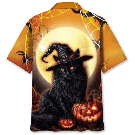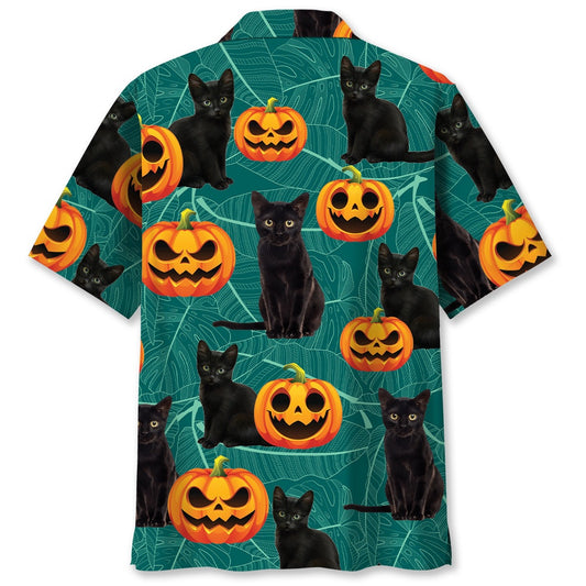 Black Cat Pumpkin Halloween Hawaiian Shirt, Cat Hawaiian Shirt, Funny Hawaiian Shirts