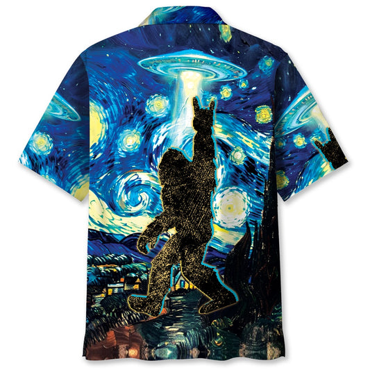 Starry Night Alien Bigfoot Rock&Roll Hawaiian Shirt, Funny Hawaiian Shirt, Cool Hawaiian Shirts, Best Hawaiian Shirts