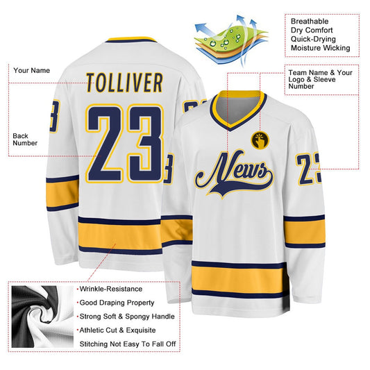 Usa Hockey Jersey, Custom White Navy Gold Hockey Jersey, Team Hockey Jerseys