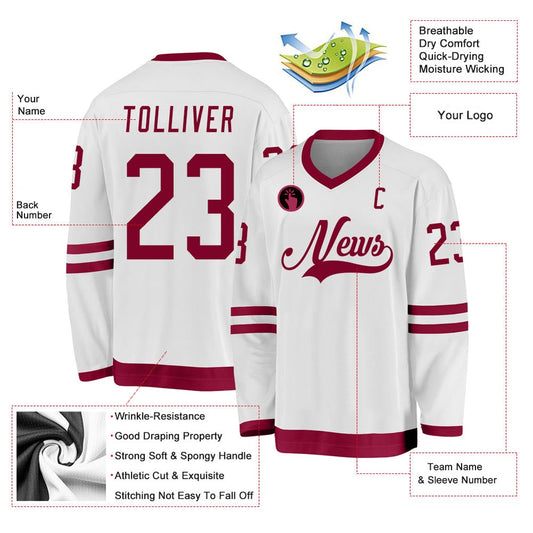 Usa Hockey Jersey, Custom White Maroon Hockey Jersey, Team Hockey Jerseys