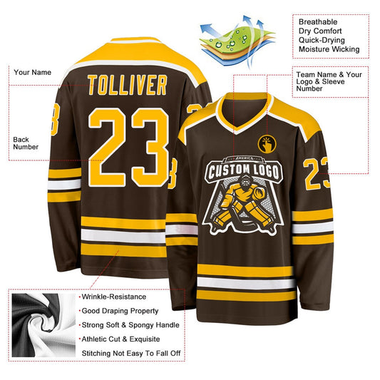Usa Hockey Jersey, Custom Brown Gold White Hockey Jersey, Team Hockey Jerseys