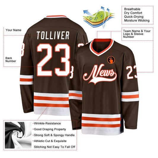 Usa Hockey Jersey, Custom Brown White Orange Hockey Jersey, Team Hockey Jerseys
