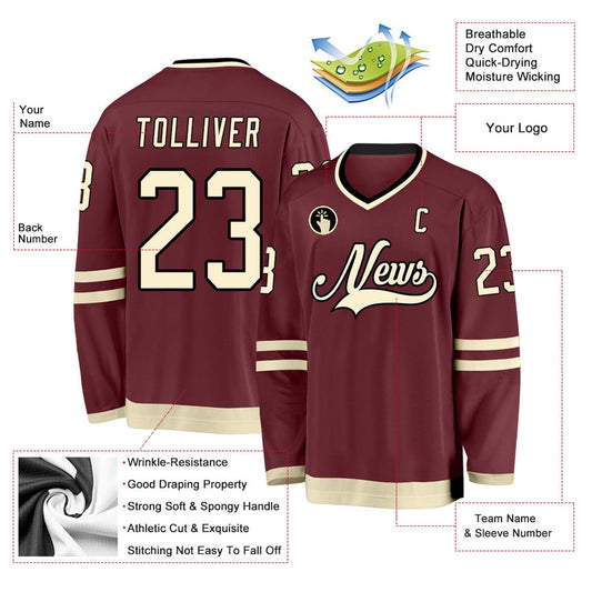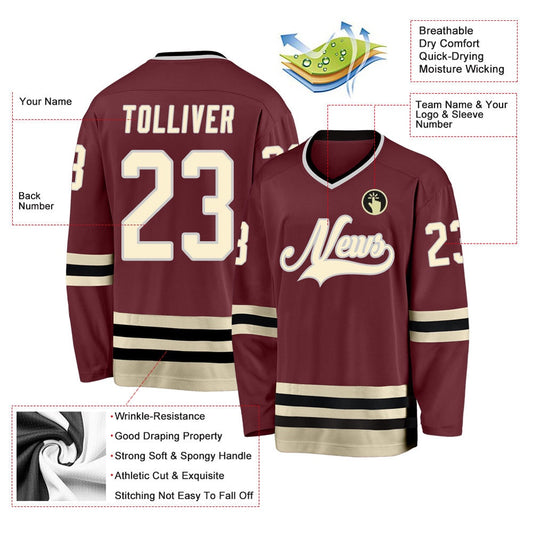 Usa Hockey Jersey, Custom Burgundy Cream Black Hockey Jersey, Team Hockey Jerseys