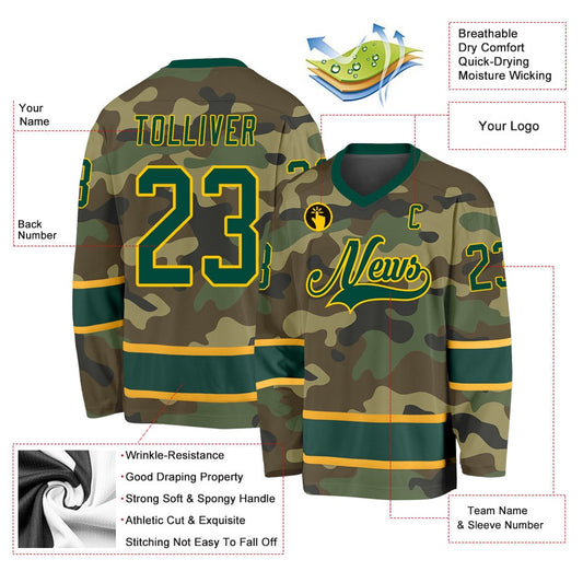 Usa Hockey Jersey, Custom Camo Green Gold Salute To Service Hockey Jersey, Team Hockey Jerseys