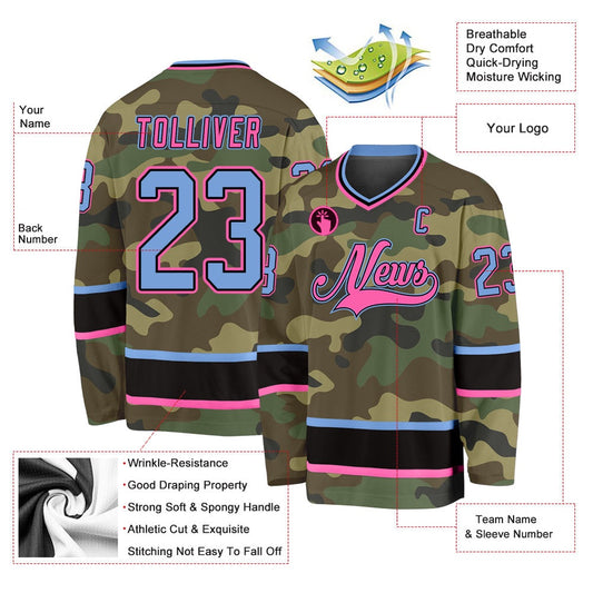 Usa Hockey Jersey, Custom Camo Light Blue Pink Salute To Service Hockey Jersey, Team Hockey Jerseys