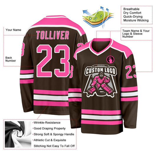 Usa Hockey Jersey, Custom Brown Pink White Hockey Jersey, Team Hockey Jerseys