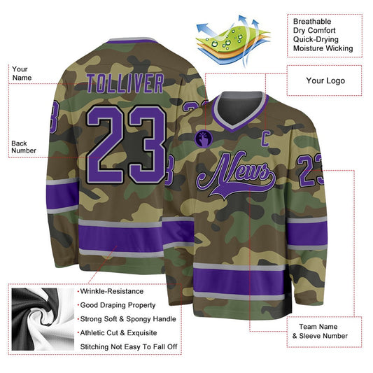 Usa Hockey Jersey, Custom Camo Purple Black Salute To Service Hockey Jersey, Team Hockey Jerseys
