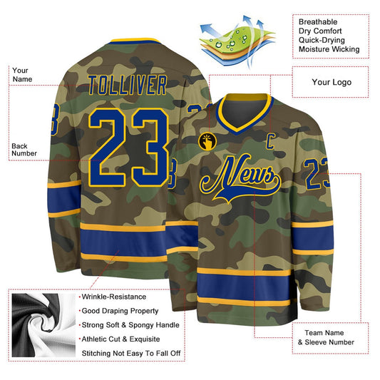 Usa Hockey Jersey, Custom Camo Royal Gold Salute To Service Hockey Jersey, Team Hockey Jerseys