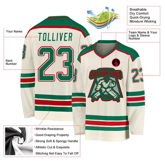Usa Hockey Jersey, Custom Cream Kelly Green Red Hockey Jersey, Team Hockey Jerseys