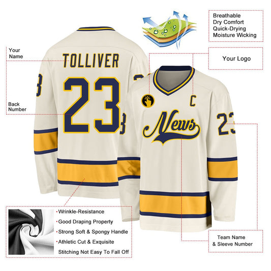 Usa Hockey Jersey, Custom Cream Navy Gold Hockey Jersey, Team Hockey Jerseys