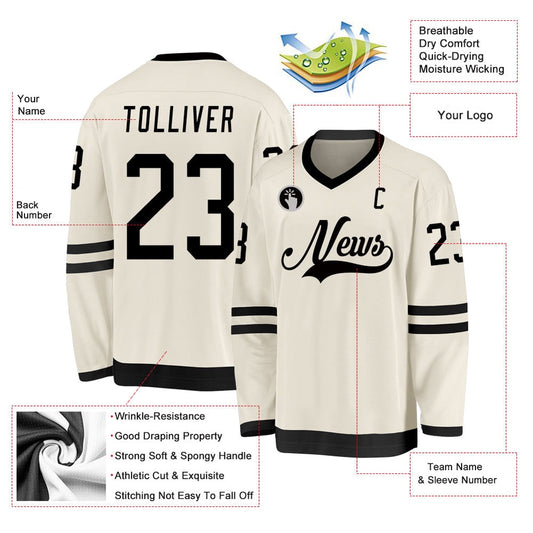 Usa Hockey Jersey, Custom Cream Black Hockey Jersey, Team Hockey Jerseys