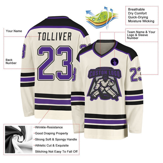 Usa Hockey Jersey, Custom Cream Purple Black Hockey Jersey, Team Hockey Jerseys