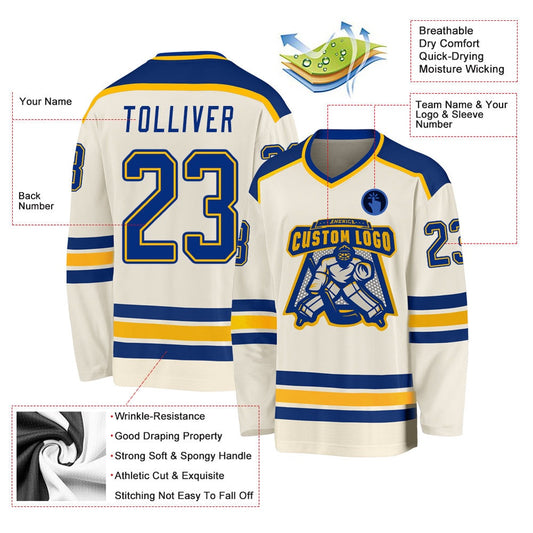 Usa Hockey Jersey, Custom Cream Royal Gold Hockey Jersey, Team Hockey Jerseys