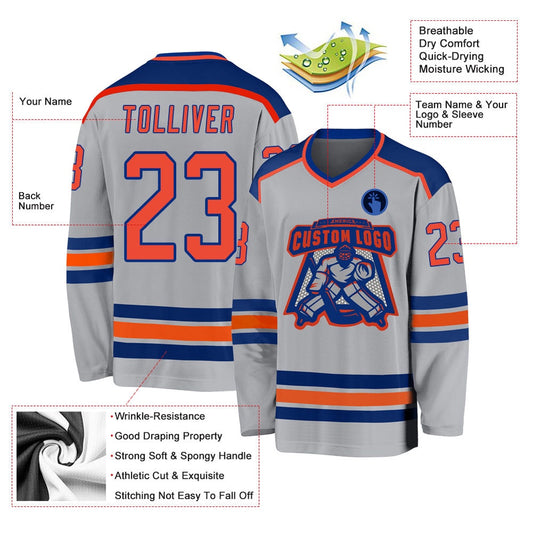 Usa Hockey Jersey, Custom Gray Orange Royal Hockey Jersey, Team Hockey Jerseys