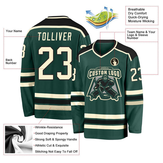 Usa Hockey Jersey, Custom Green Cream Black 1 Hockey Jersey, Team Hockey Jerseys