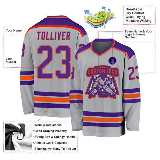 Usa Hockey Jersey, Custom Gray Purple Orange Hockey Jersey, Team Hockey Jerseys