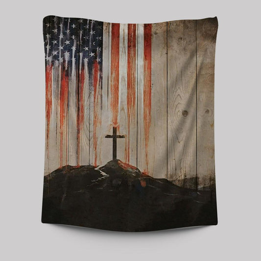 American Flag Cross Tapestry Wall Art - Christian Wall Tapestry - Religious Tapestries Wall Hanging Prints