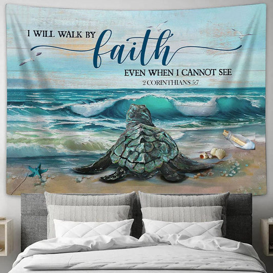 Sea Turtle I Will Walk By Faith Even When I Cannot See Wall Art Tapestry - Christian Wall Art - Religious Art