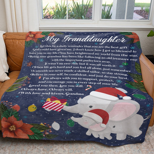 Christmas Elephants Granddaughter And Grandma Blanket, Beautiful Chirstmas Wishes For Granddaughter Blanket, Christmas Blanket