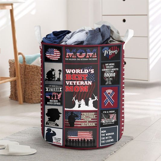 Mother's Day Laundry Basket, Proud Of Veteran Mom Laundry Basket Prints Vintage, Mother's Day Gift, Storage Basket For Mom