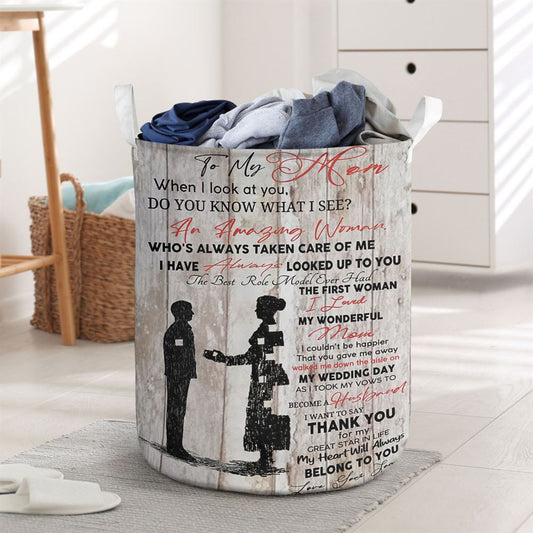 Mother's Day Laundry Basket, Family To My Mom Quotes From Daughter Personalized Laundry Basket, Mother's Day Gift, Storage Basket For Mom