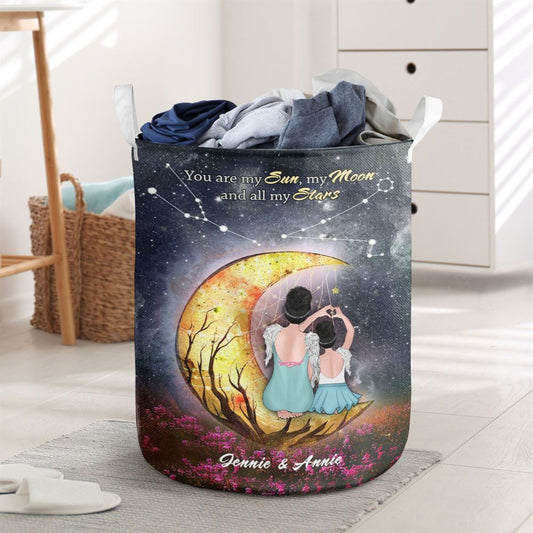 Mother's Day Laundry Basket, Heart Shaped Mother Daughter Night Sky Moon Star Custom Style Laundry Basket, Mother's Day Gift, Storage Basket For Mom