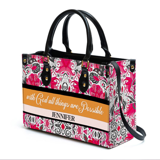 With God All Things Are Possible Leather Bag, Personalized Leather Bag With Handle For Christian Women