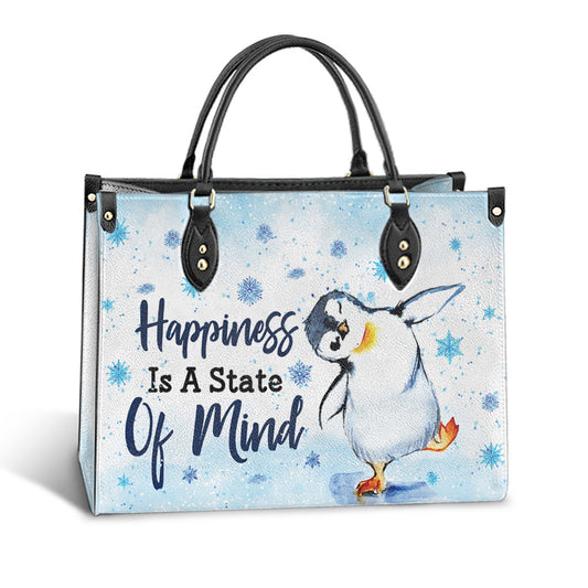 Penguin Happiness Is A State Of Mind 1 Leather Bag, Best Gifts For Penguin Lovers, Women's Pu Leather Bag