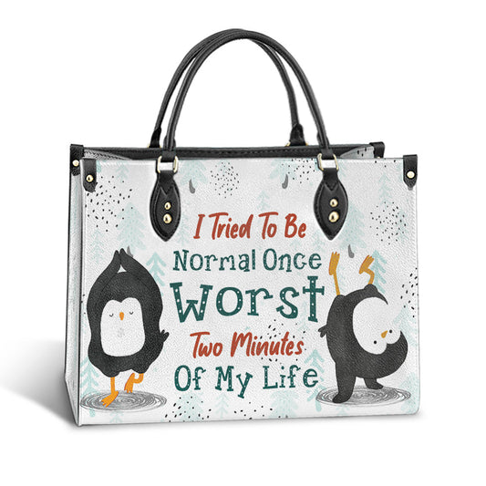 Penguin I Tried To Be Normal Once eather Bag, Best Gifts For Penguin Lovers, Women's Pu Leather Bag