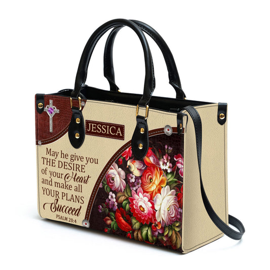Personalized Flower May He Make All Your Plans Succeed Leather Bag, Christian Pu Leather Bags For Women