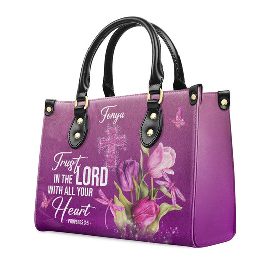 Personalized Christian Leather Bag, Trust In The Lord With All Your Heart - Awesome Personalized Leather Handbag, Faith Handbag