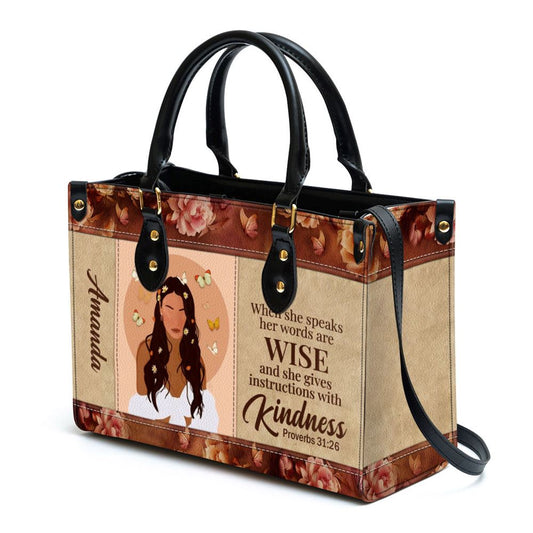 Personalized When She Speaks Her Words Are Wise Leather Bag, Christian Pu Leather Bags For Women