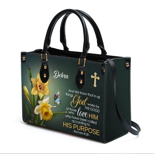 Romans 8 28 And We Know That In All Things Religious Personalized Leather Handbag With Handle Gifts For Christian Women