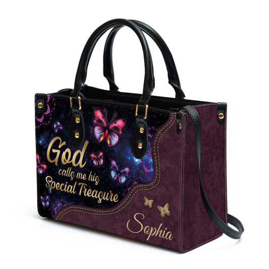 God Calls You His Treasure Leather Bag, Custom Name Butterfly Leather Handbag, Christian Gifts For Women