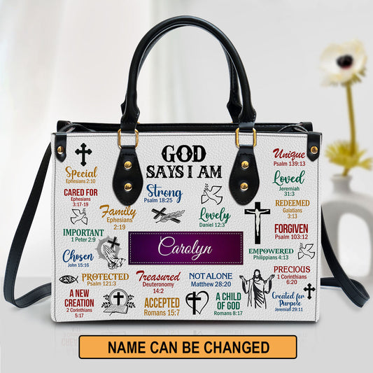God Says I Am Scripture Christian Leather Bag, Personalized Leather Bag With Handle For Christian Women