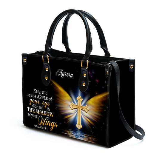 Hide Me In The Shadow Of Your Wings Psalm 17 8 Leather Bag, Personalized Leather Bible Handbag, Christian Gifts For Women