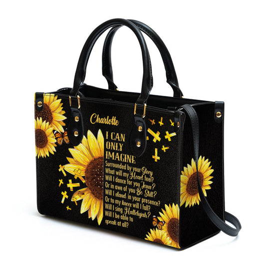 I Can Only Imagine Sunflower And Cross Personalized Leather Handbag With Handle, Gifts For Religious Women
