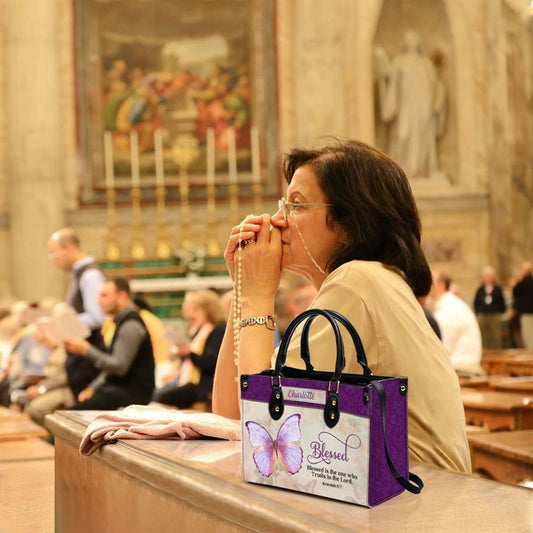 Blessed Is The One Who Trusts In The Lord Personalized Leather Bag With Handle For Christian Women