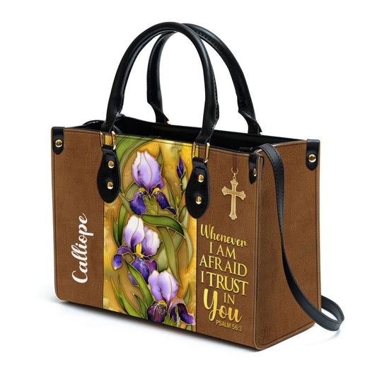Flower And Cross Whenever I Am Afraid I Trust In You Psalm 563 Personalized Leather Handbag