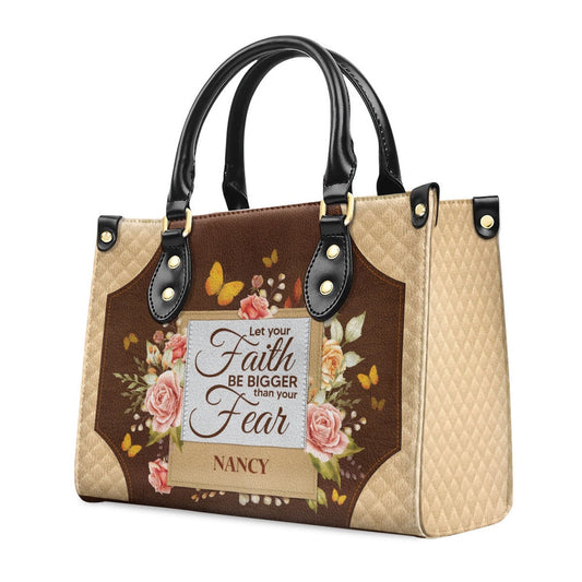 Personalized Christian Leather Bag, Let Your Faith Be Bigger Than Your Fear Leather Handbag, Faith Handbag