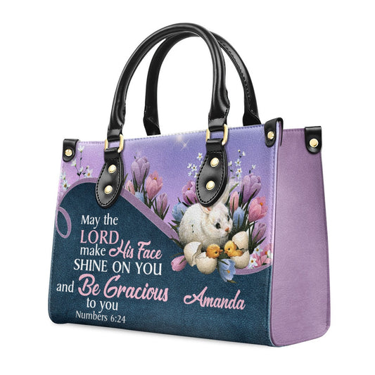 Personalized Christian Leather Bag, May The Lord Make His Face Shine On You And Be Gracious To You Leather Handbag, Faith Handbag