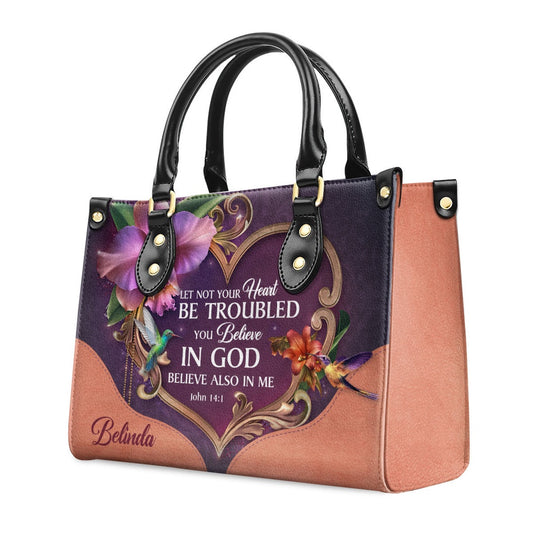 Personalized Christian Leather Bag, Let Not Your Heart Be Troubled Leather Handbag, Faith Handbag