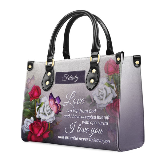 Personalized Christian Leather Bag, Love Is A Gift From God Religious Romantic Leather Handbag, Gifts For Christian Women, Faith Handbag