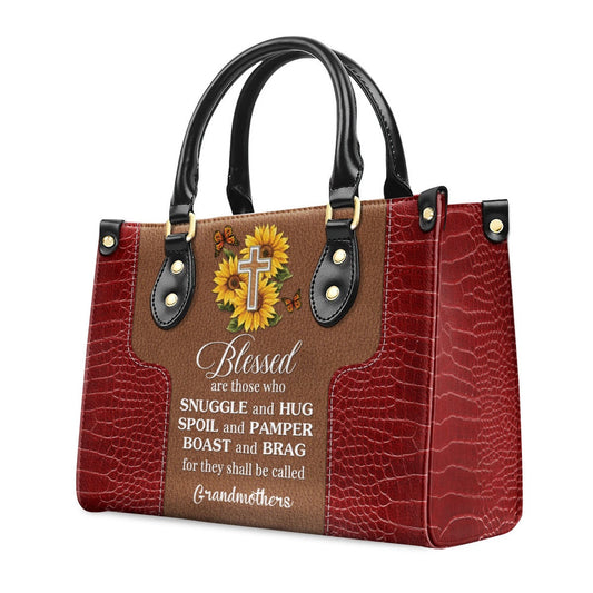 Personalized Christian Leather Bag, Lovely Personalized Sunflower Leather Handbag - Blessed Are Those Who Spoil And Pamper, Faith Handbag