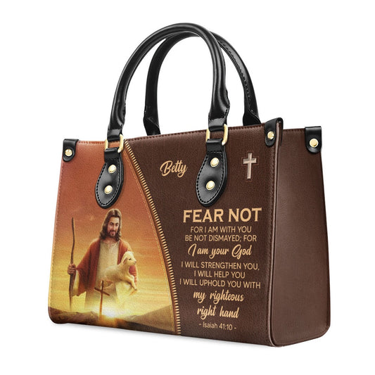 Personalized Christian Leather Bag, Meaningful Personalized Leather Handbag - For I Am With You, Faith Handbag